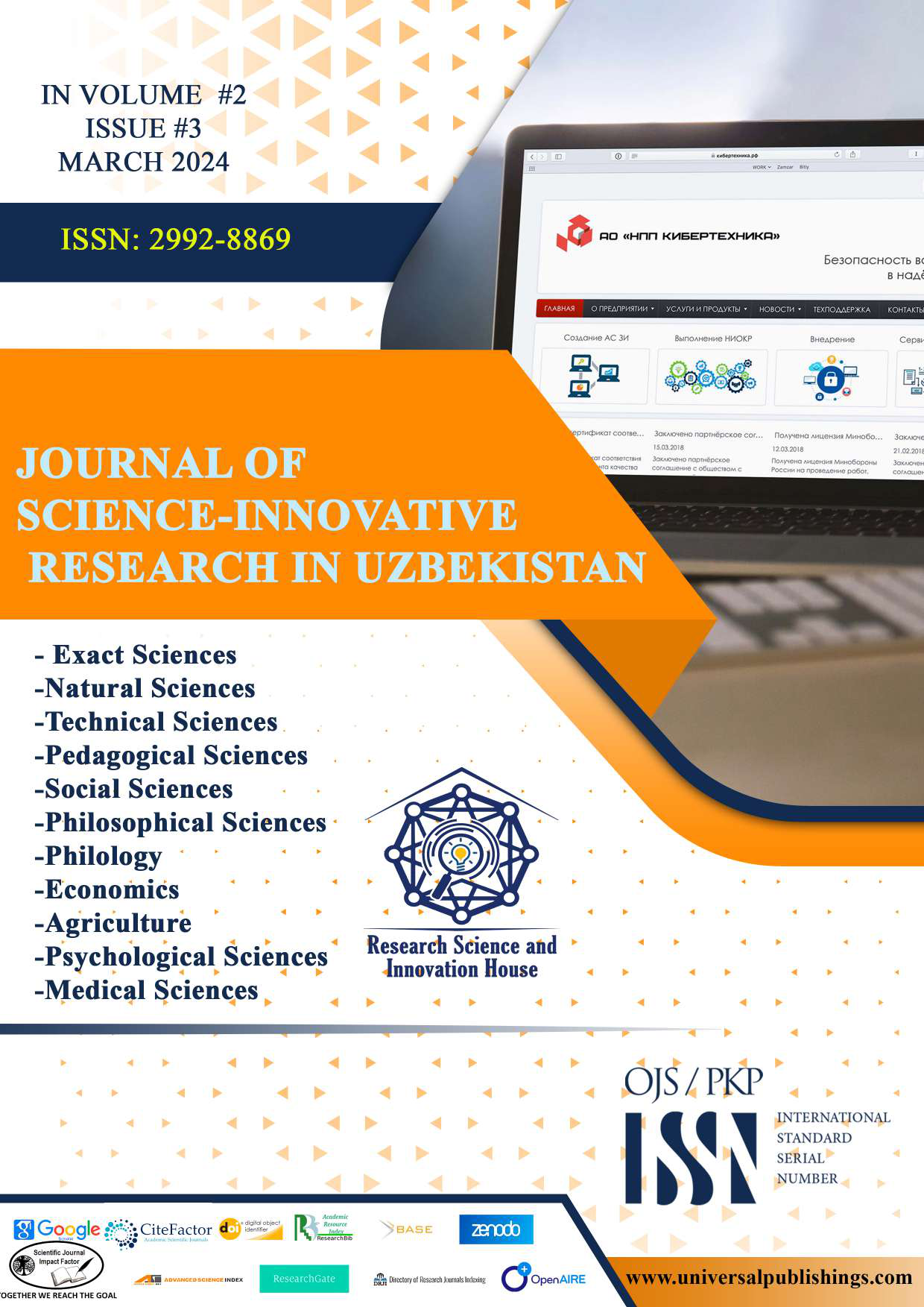 JOURNAL OF SCIENCE-INNOVATIVE RESEARCH IN UZBEKISTAN (ISSN: 2992-8869) ilmiy jurnalining (O'zbekiston Respublikasi Prezidenti Administratsiyasi huzuridagi AOKAning 081360-sonli Guvohnomasi asosida)2-tom 9-soni uchun qabul e'lon materiallari.